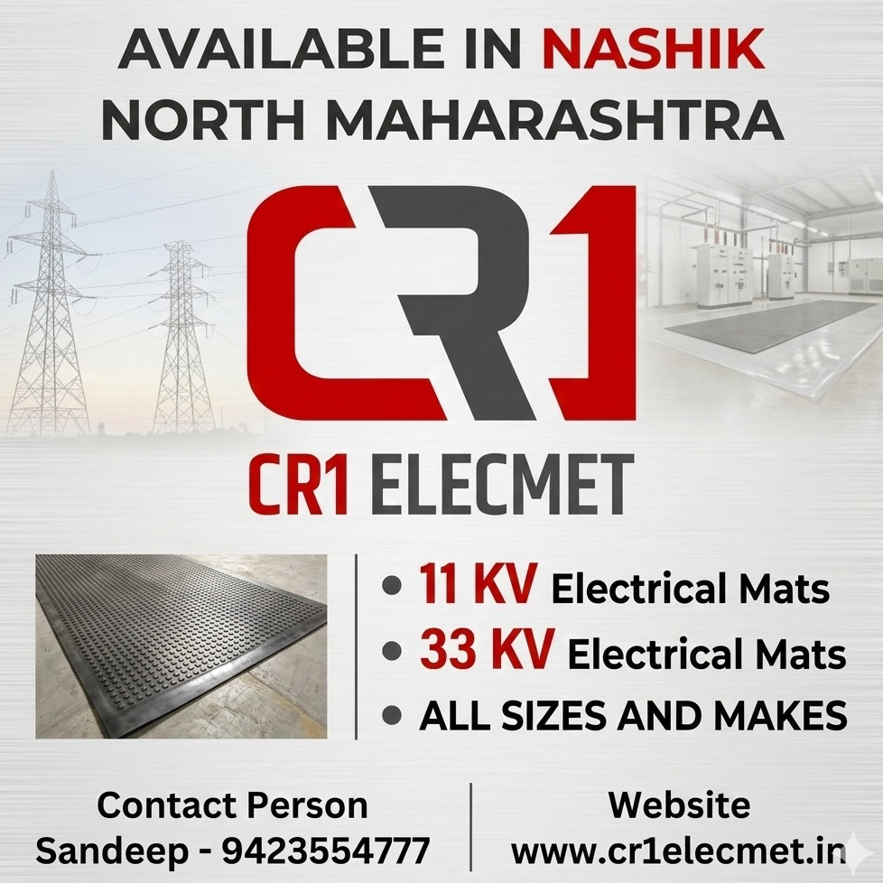 In Nashik and the North Maharashtra region, CR1 Elecmet Private Limited is a primary supplier for high-voltage electrical safety equipment, including insulating mats and safety rods.