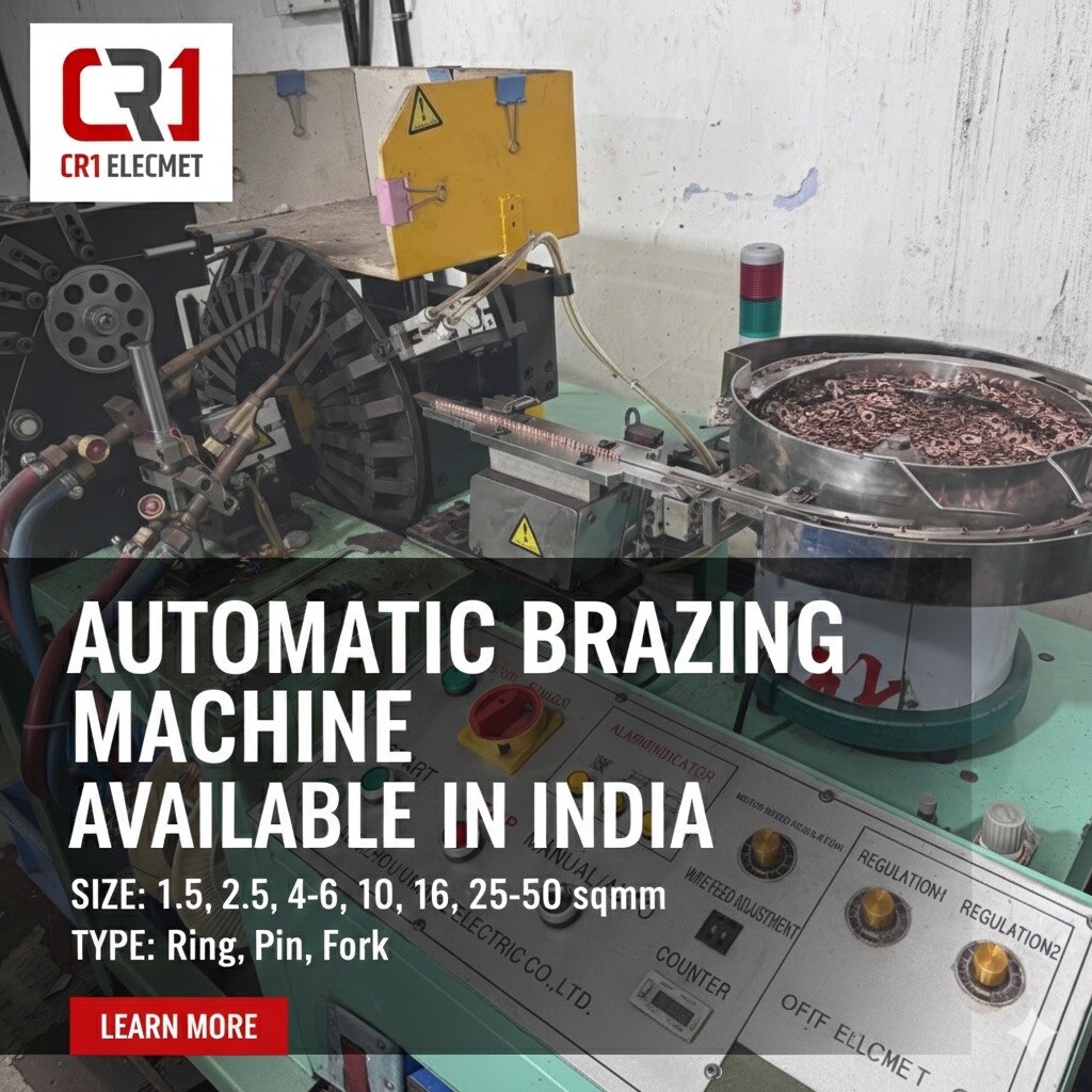 Looking for precision and speed in terminal brazing? We bring you the most reliable Automatic Brazing Machine now available in India! Designed for high-efficiency manufacturing of Ring, Pin, and Fork type terminals. ✅ Versatile Size Range: Handles 1.5, 2.5, 4-6, 10, 16, and 25 to 50 sq.mm. ✅ Multi-Type Support: Perfect for Ring, Pin, and Fork terminals. ✅ Consistent Quality: Ensure strong, uniform brazing every single time. ✅ High Productivity: Designed to minimize labor and maximize output. Upgrade your workshop with the industry-standard in terminal brazing technology. Ready to scale your production?