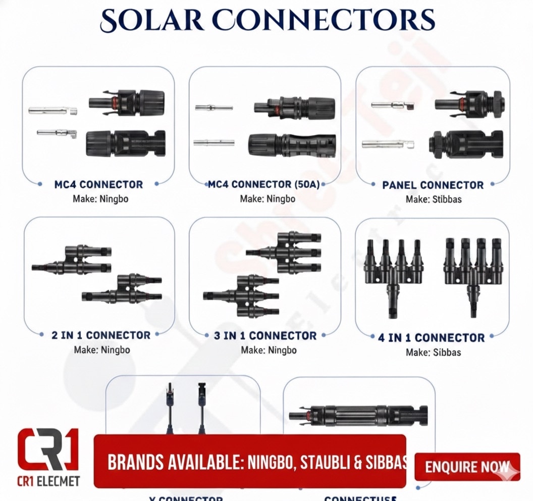 We are the leading stockist in Nashik for the world's most trusted brands: ✅ Stäubli (Original MC4): The global gold standard for safety and 25-year durability. ✅ Ningbo: High-performance 1500V connectors for large-scale industrial arrays. ✅ Sibbas: Reliable, cost-effective solutions for residential and commercial solar setups.
